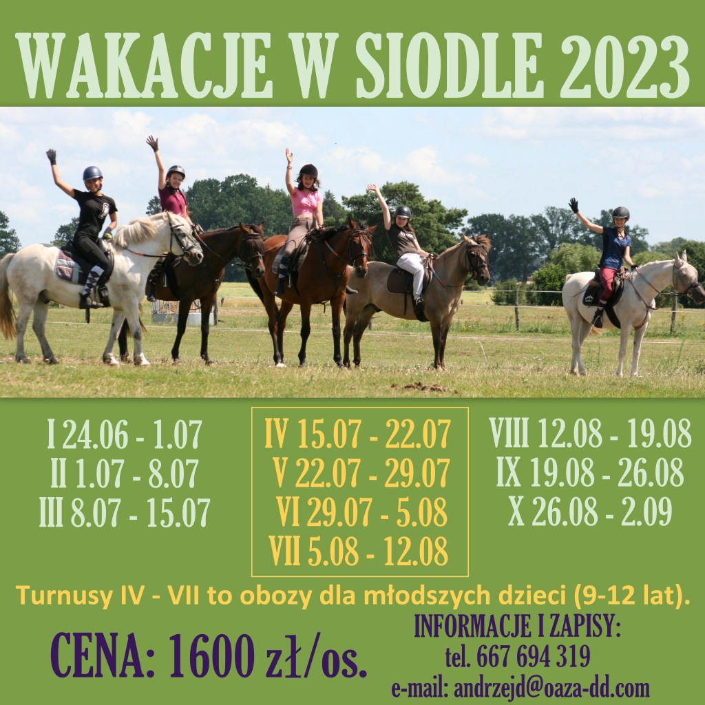 Więcej informacji w zakładce „WAKACJE W SIODLE” 🙂